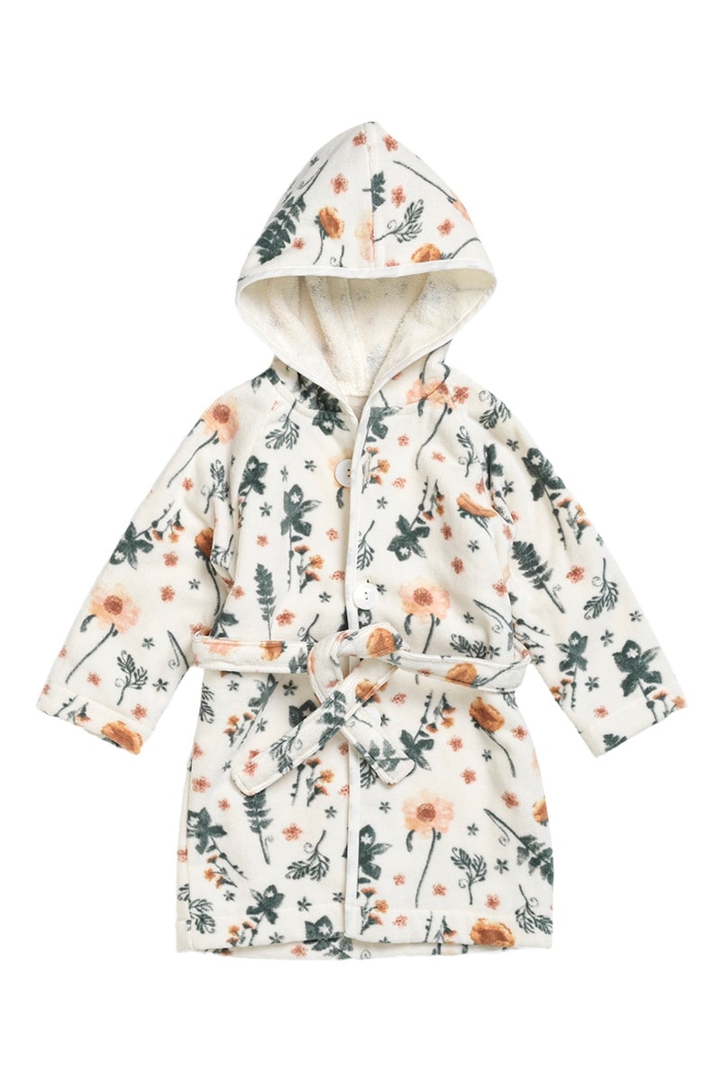 Velours Badjas met Capuchon - Wit en Donkergroen