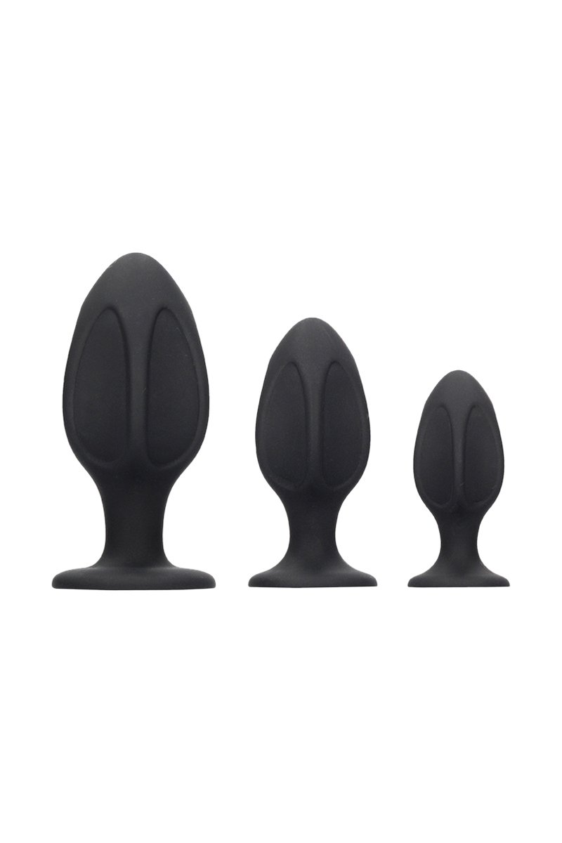 3 buttplugs - Zwart - 5,4 x 2,4 / 6,8 x 3,2 / 8,5 x 4 cm