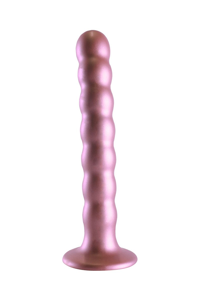 De siliconen G-spot dildo met kralen, met zijn sterke zuignap en mooie metallic kleur, is een klasse apart.