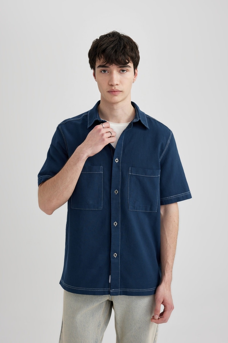 Overhemd relaxed met korte mouwen.