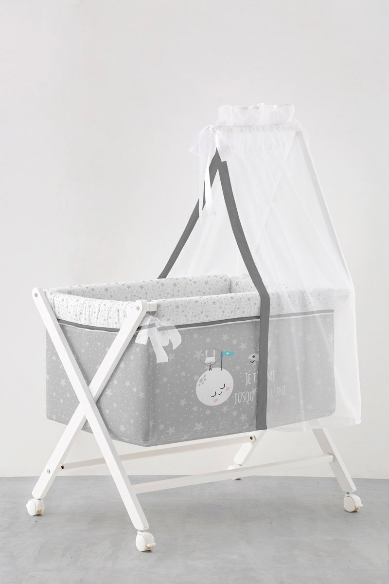 Houten Wieg en Bedtextiel Space Rabbit - Grijs en Wit
