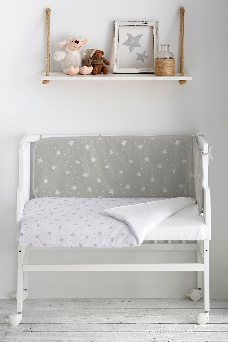 Aanschuifwieg met Bedtextiel Stars and Dots - Grijs - 4-delig