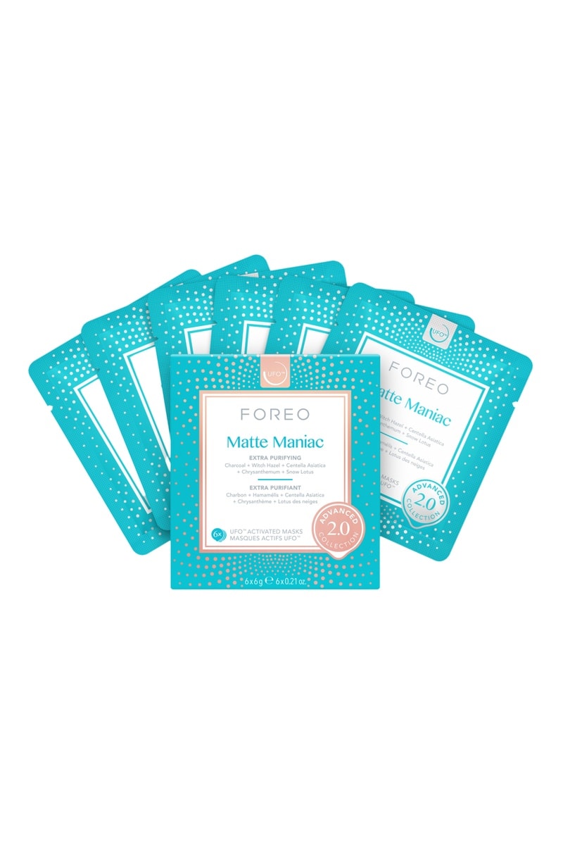 De reinigende formule Matte Maniac 2.0, waarvan is bewezen dat hij tot 8 uur diep hydrateert, is verkrijgbaar in een set van 6 zakjes en is compatibel met alle apparaten van de UFO™-serie.