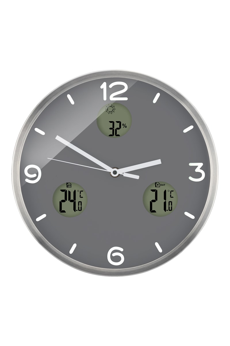 Klok - 30 cm - Donkergrijs en zilverkleurig