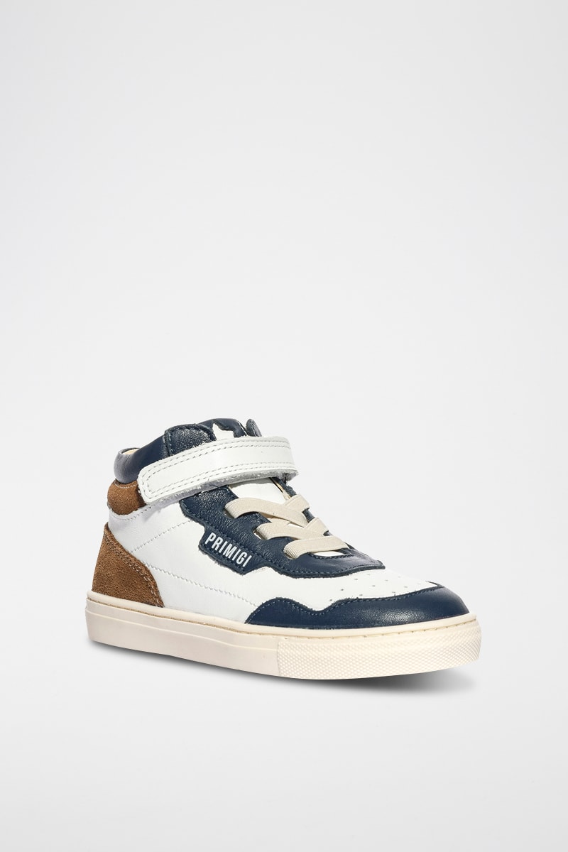 Hoge Leren Sneakers Baby Miami - Wit en Marineblauw