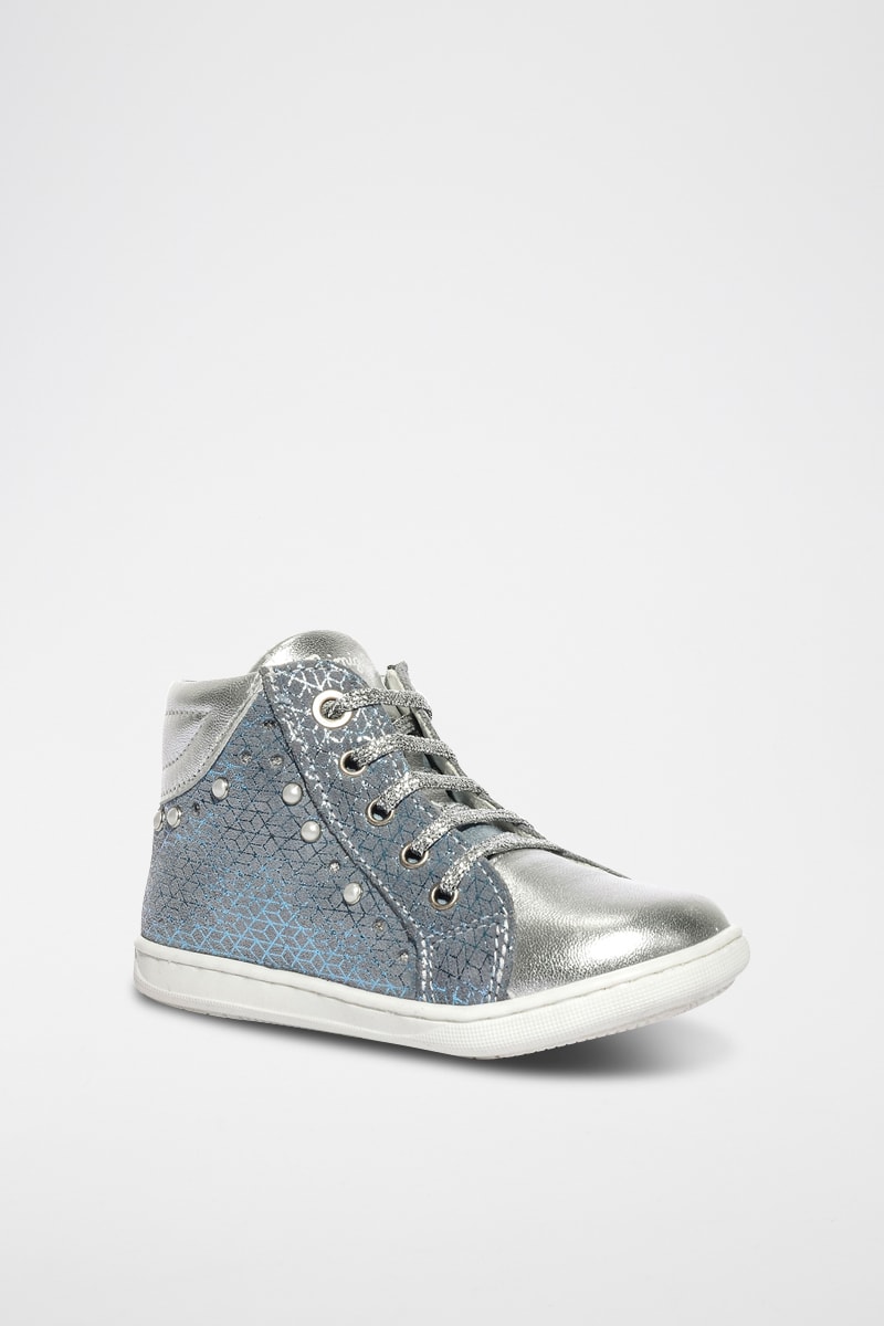 Hoge Leren Sneakers Snorky - Zilverkleurig en Hemelsblauw
