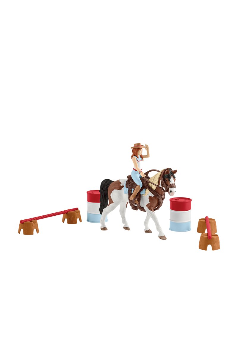 Met de Hannah Horse Club western ruiterset van Schleich kun je nu spannende Barrel Racing doen.