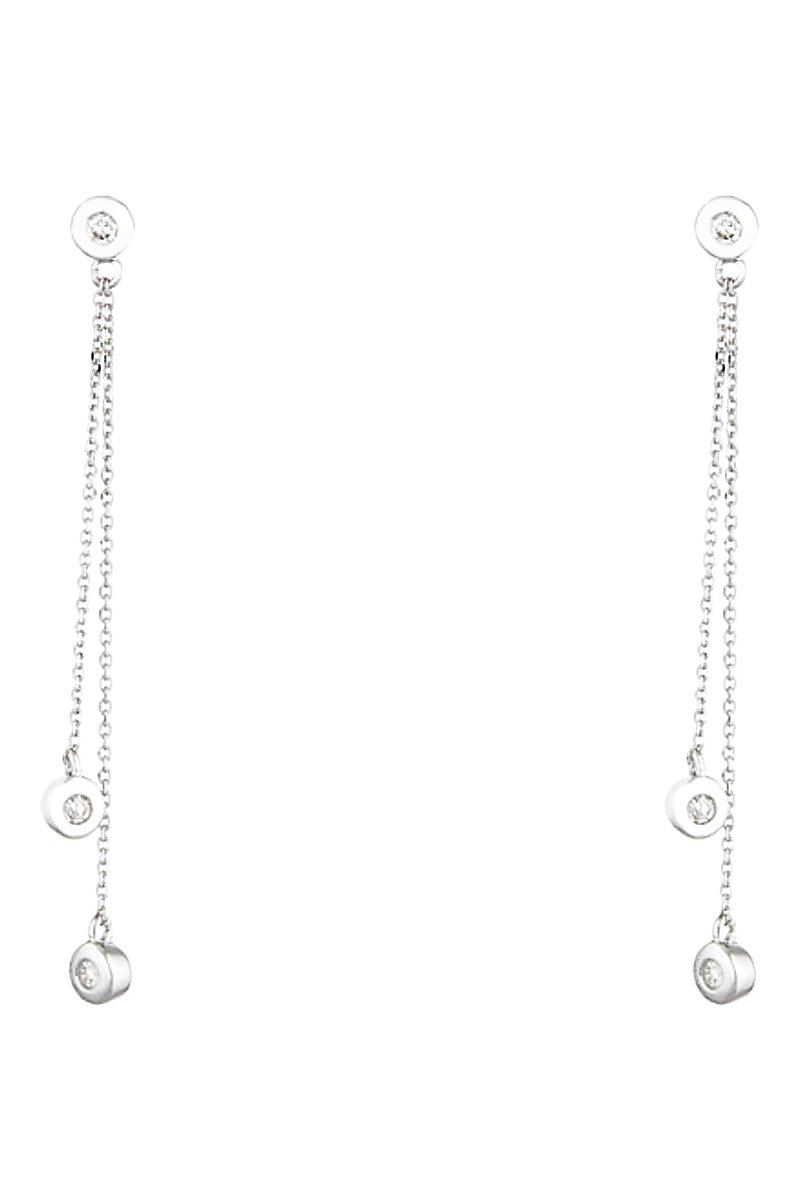 Hangende oorbellen van witgoud ingelegd met 3 diamanten.
