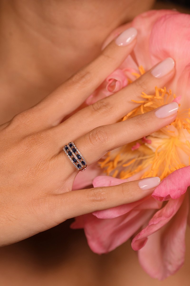 Ring Doux Rêve - Witgoud, Diamanten en Saffieren