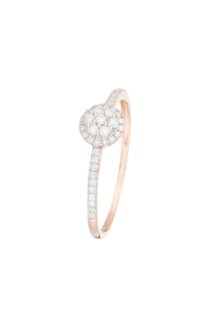 Verlovingsring van roségoud ingelegd met 43 diamanten.