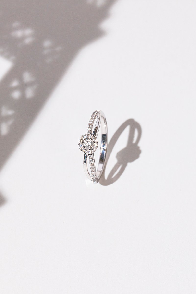 Materiaal: witgoud 375/1000 en diamanten 0,21 karaat/30