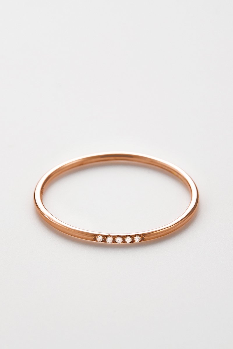Trouwring van roségoud ingelegd met 5 diamanten.