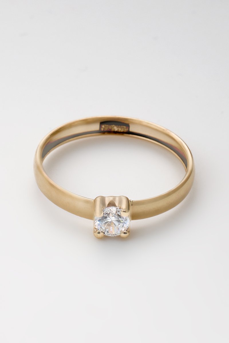 Ring van geelgoud ingelegd met 1 zirkonia.