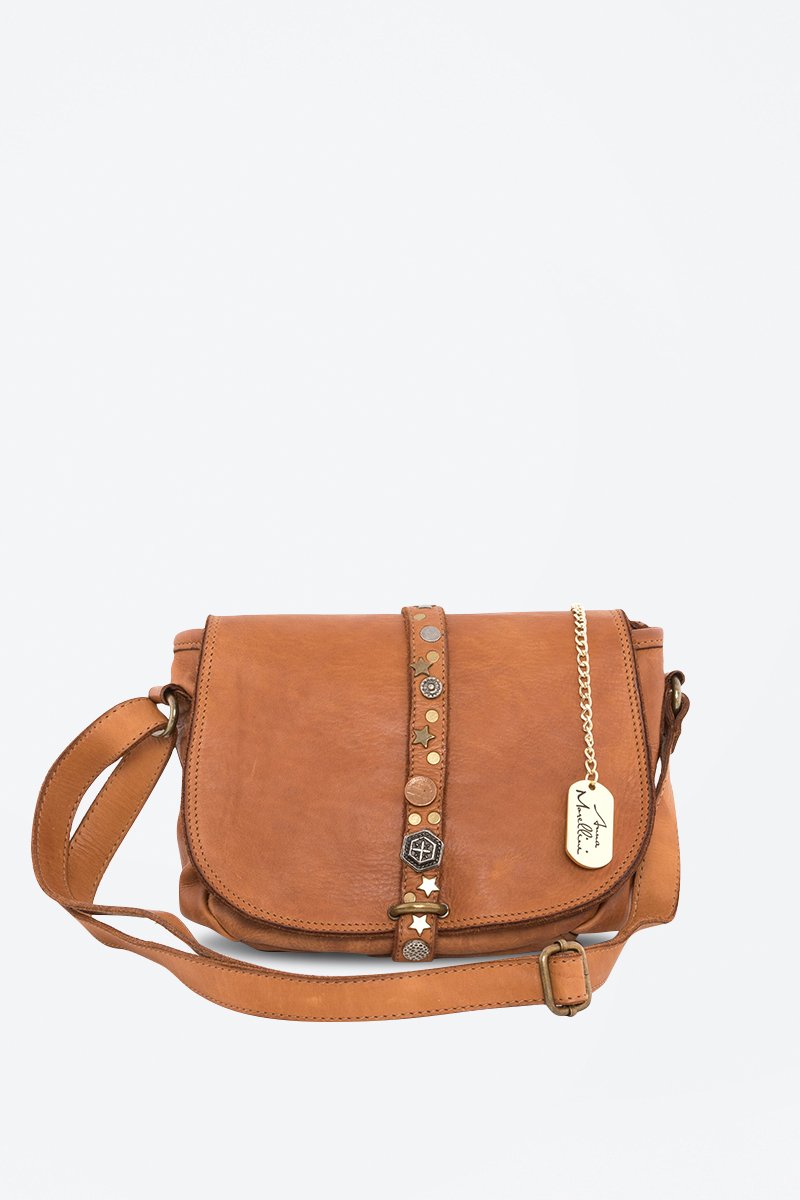 Leren Schoudertas Luigia - Zilverkleurig, goudkleurig en bruin