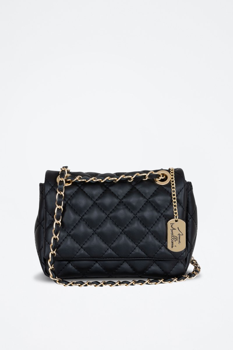 Doorgestikte Leren Schoudertas Jolarta - Zwart