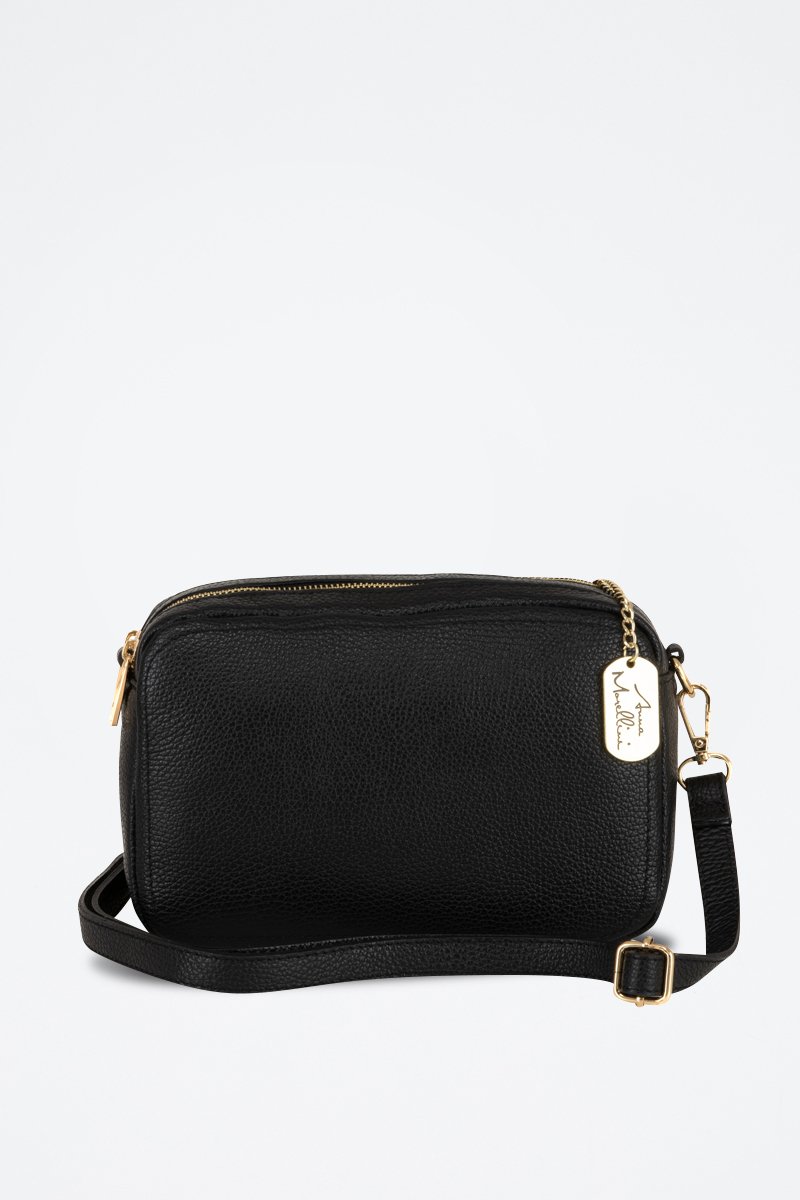 Afneembare ketting met detail van metaal en logo aan de zijkant.