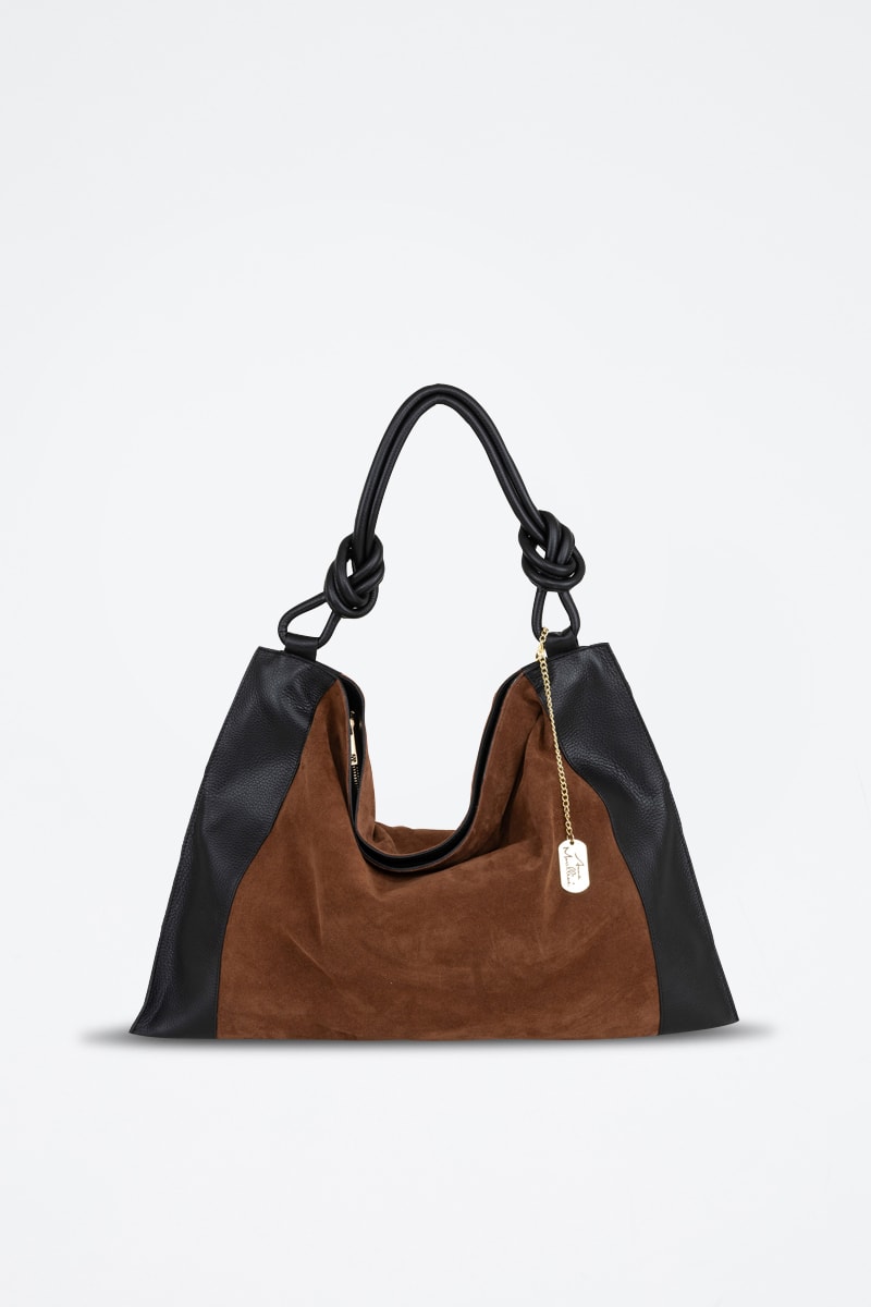 Afneembare ketting met detail van metaal en logo aan de zijkant.