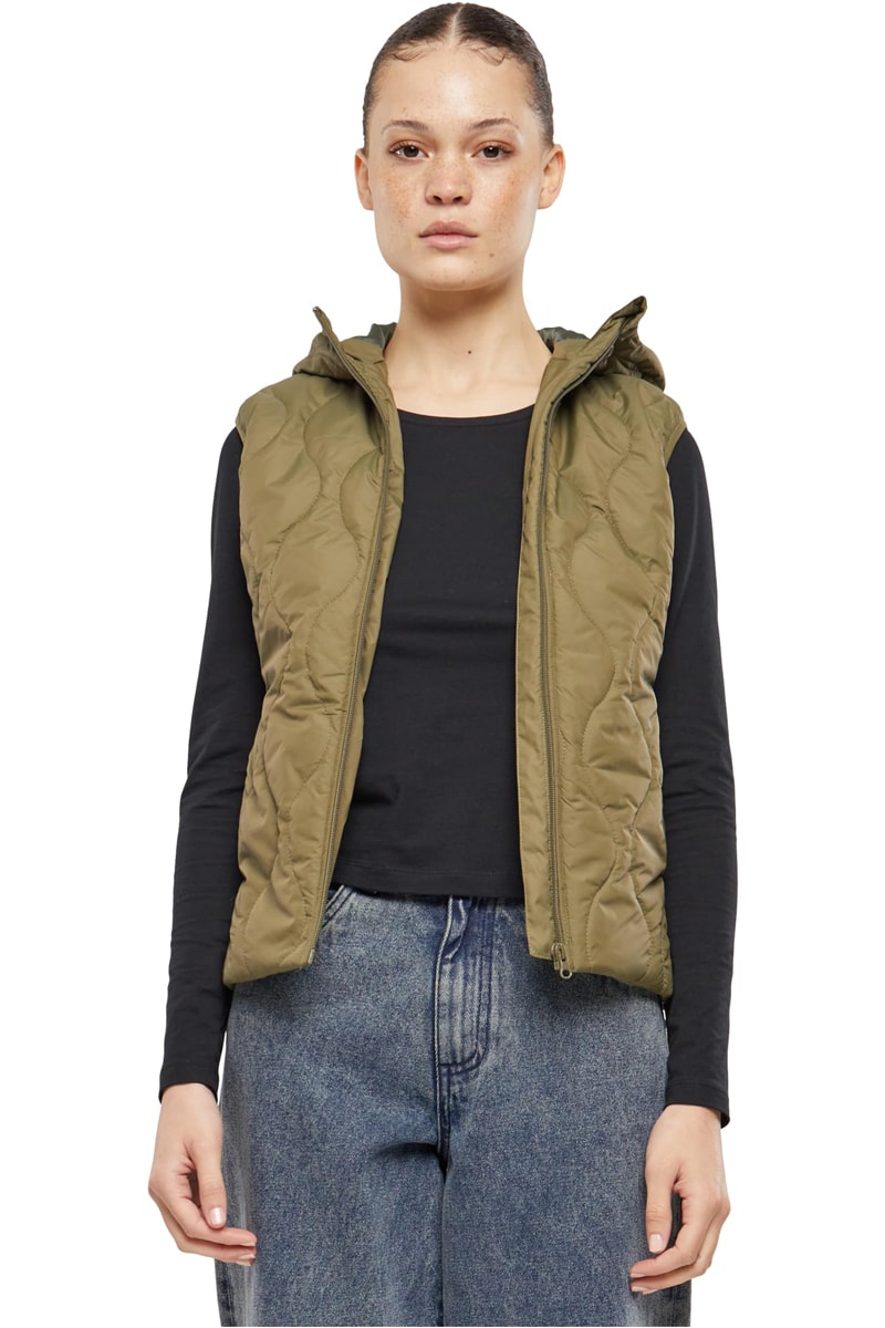 Mouwloze Gewatteerde Jas met Capuchon - Kaki