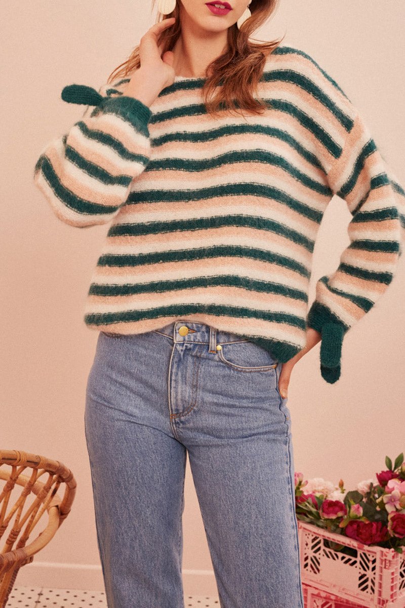 Merinoswollen en Mohair Trui Calouna - Groen en Roze