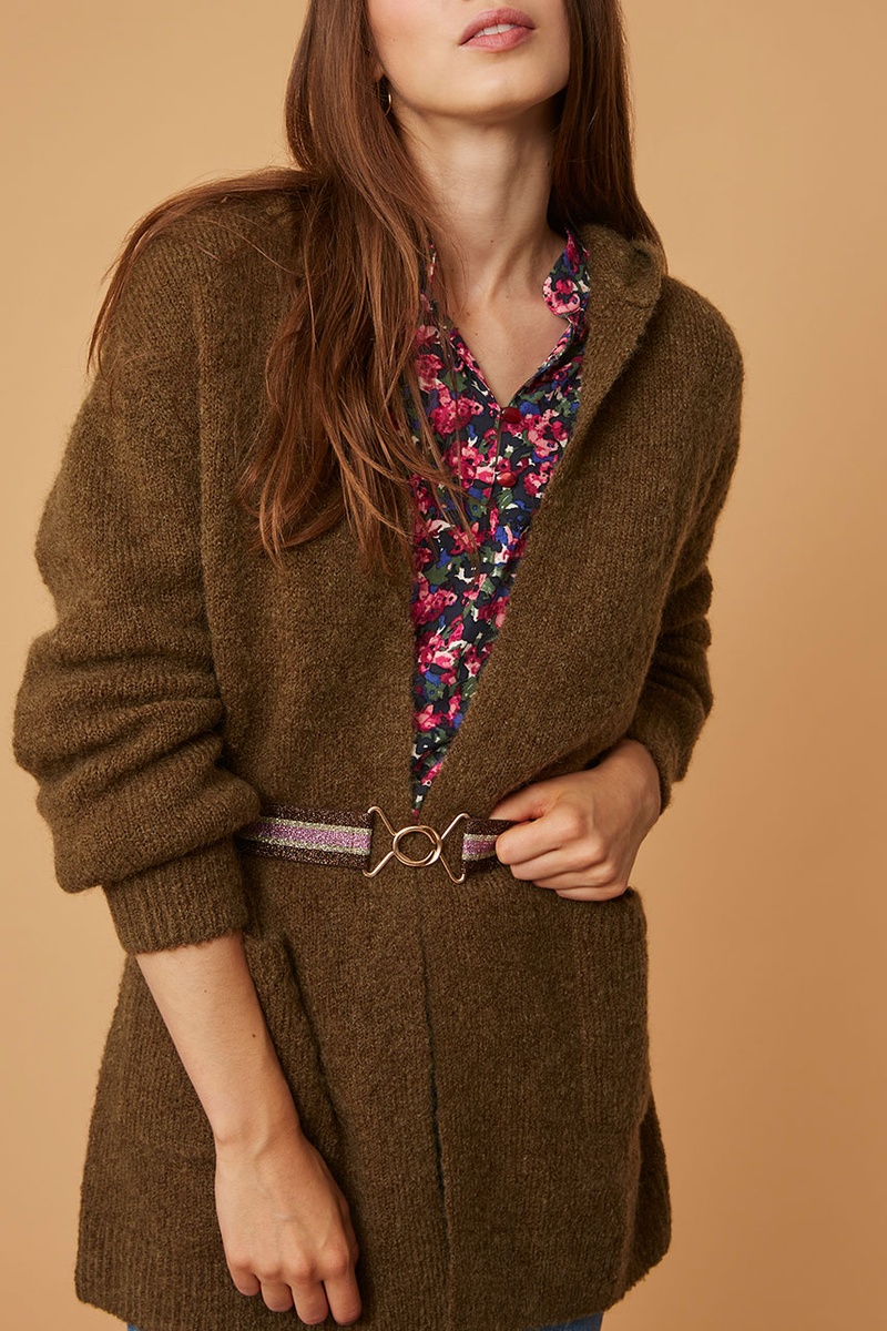 Lang Mohair en Merinoswollen Vest met Capuchon - Kaki