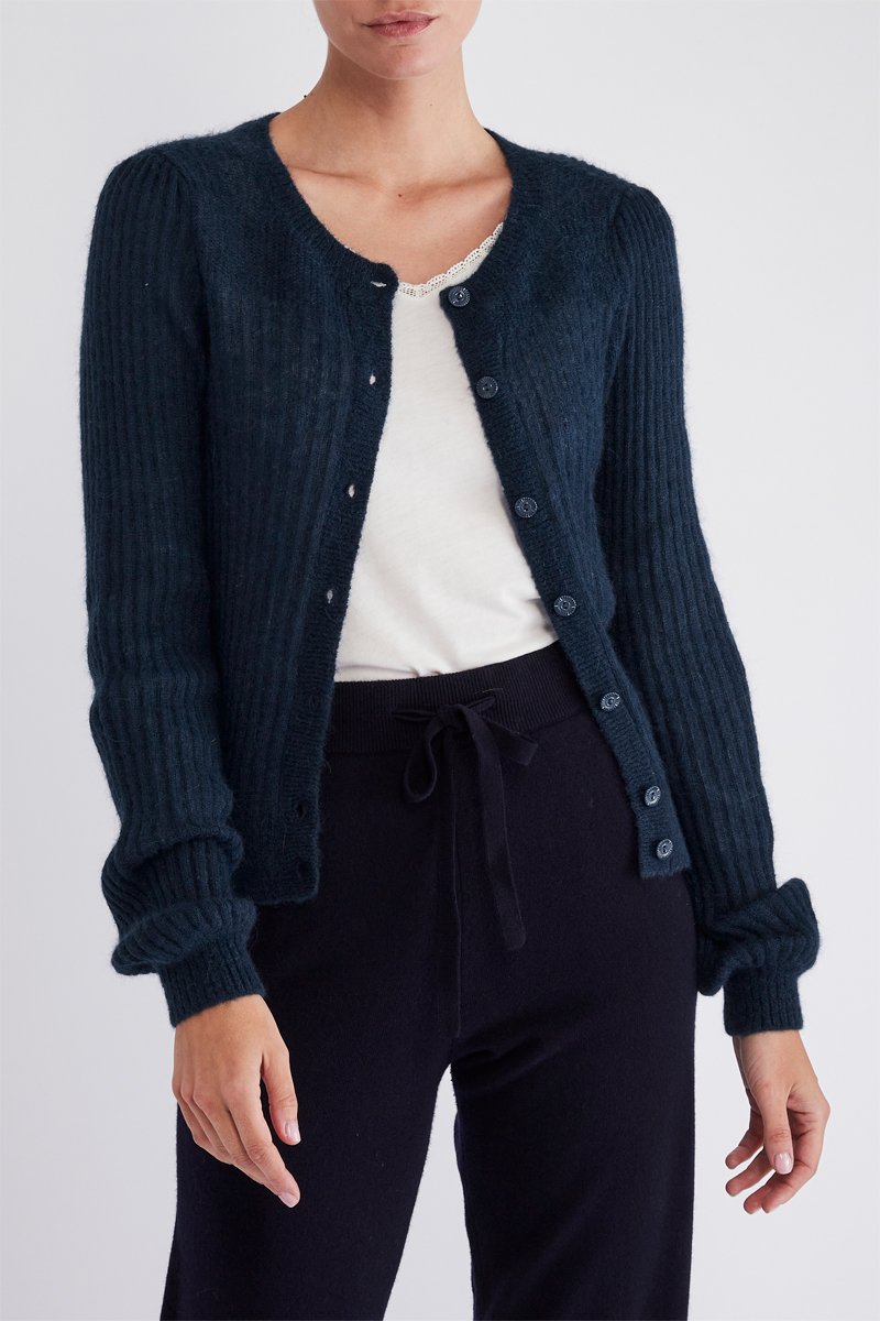 Vest van super kid mohair- en baby alpacawolmix met lange mouwen.