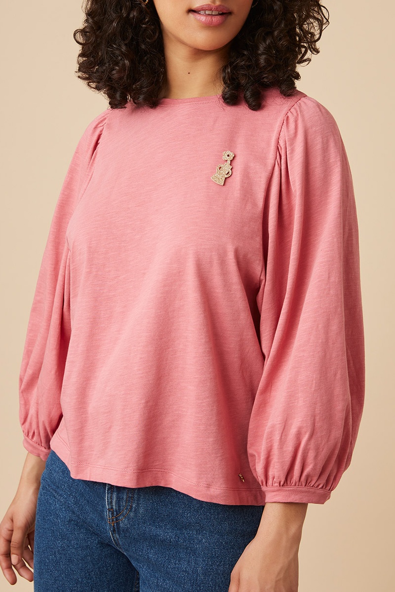 T-shirt met pofmouwen.