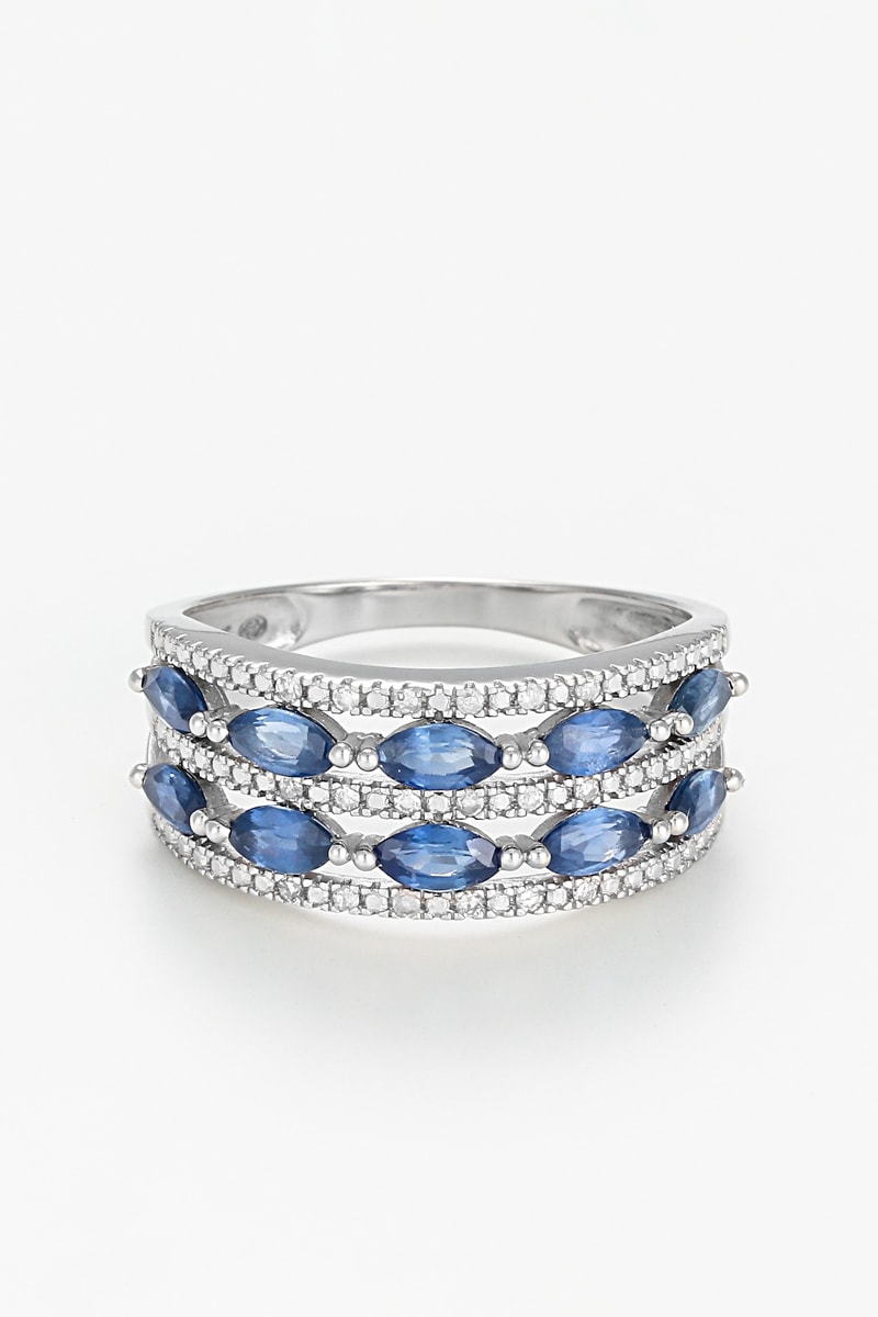 Materiaal: witgoud 375/1000, diamanten 0,06 karaat/18 en saffieren 1,33 karaat/10