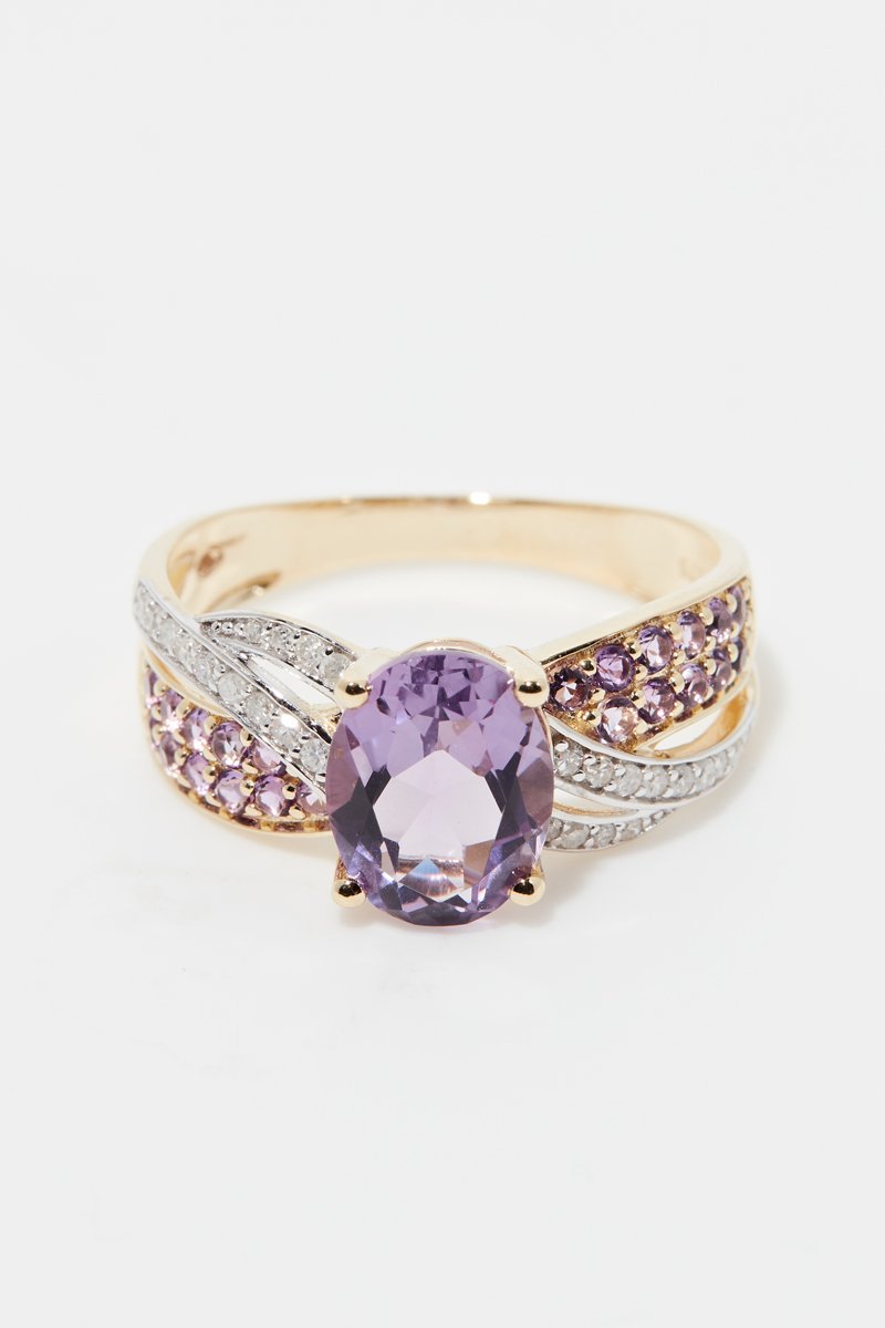 Ring Ballarat - Geelgoud, Diamanten & Amethisten