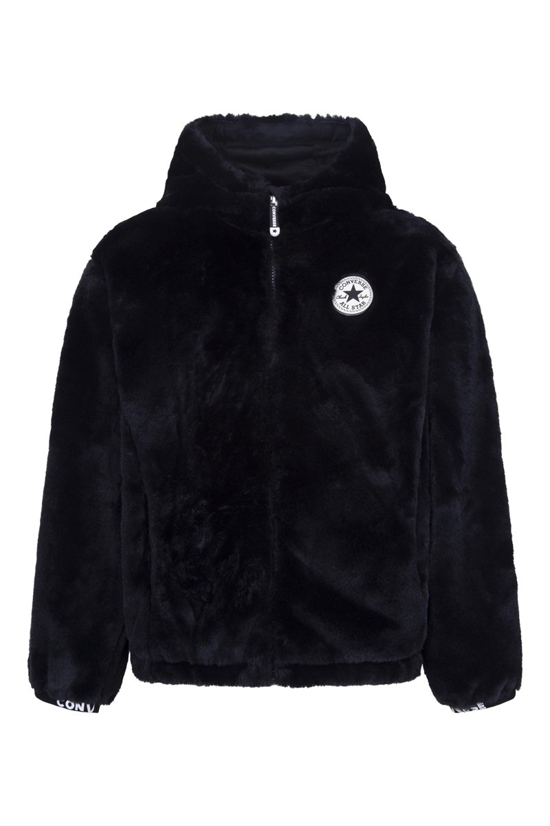 Jasje met capuchon van imitatiebont.