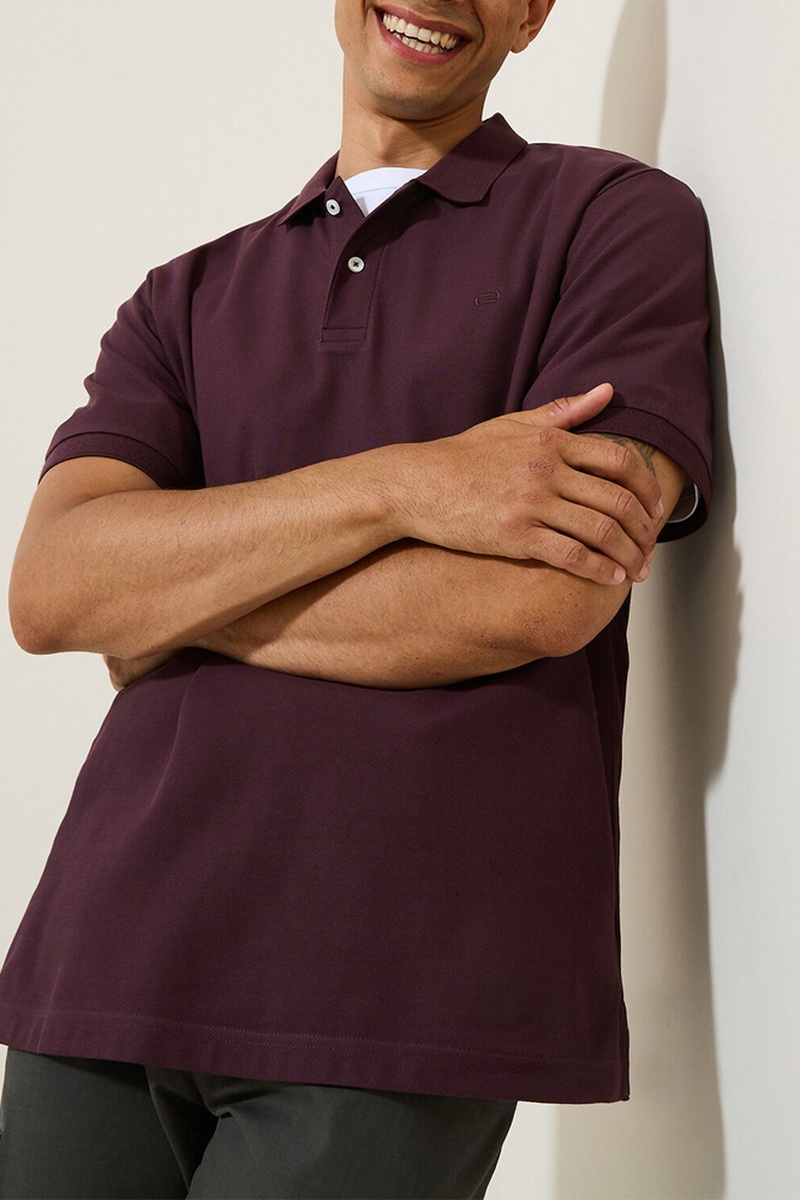 Biologisch Katoenen Polo Regular Fit- Bordeauxrood