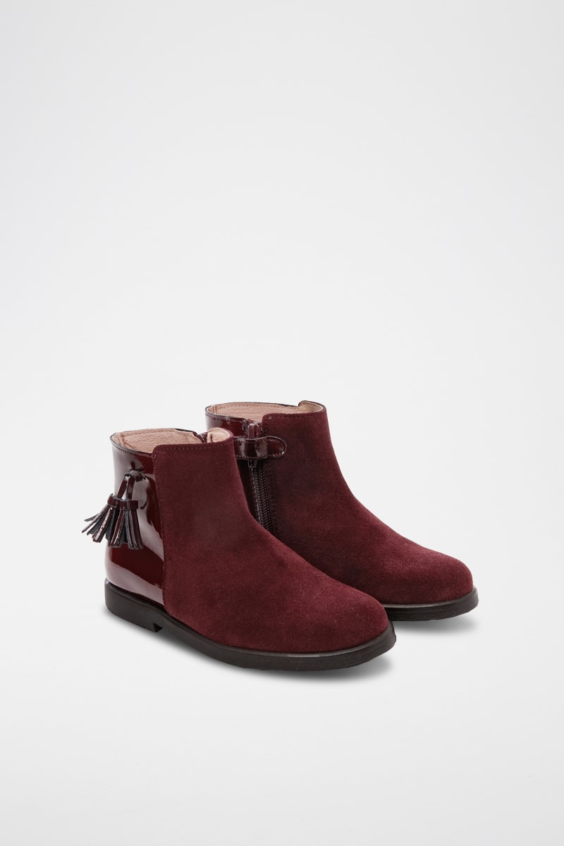Enkellaarzen van lakleer en nubuck.