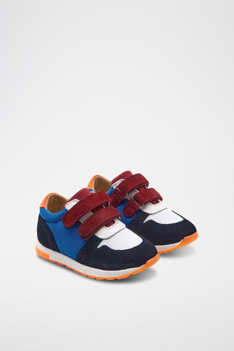 Leren en Nubuck Sneakers - Grijs en kobaltblauw