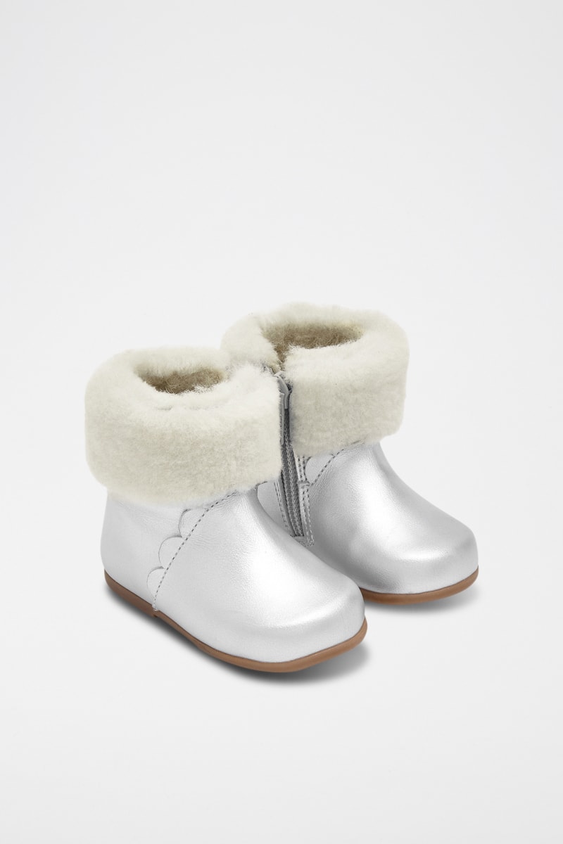 Gevoerde Leren en Schapenwollen Enkellaarzen - Zilverkleurig