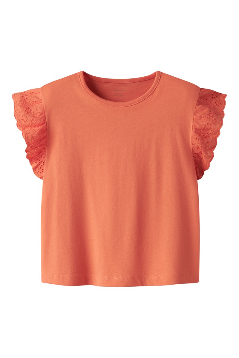 T-shirt met mouwen met ruches en Engelse borduursels.