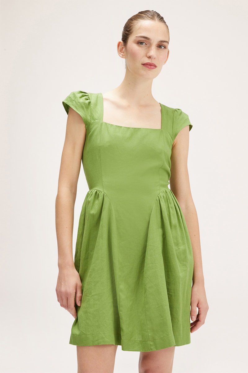 Verstelbaar bandje, smokwerk en rits aan de achterkant.