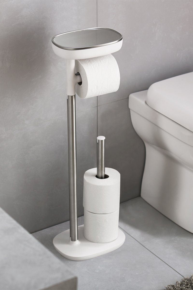 Toiletrolstandaard en Toiletborstel EasyStore Plus - Wit en Zilverkleurig