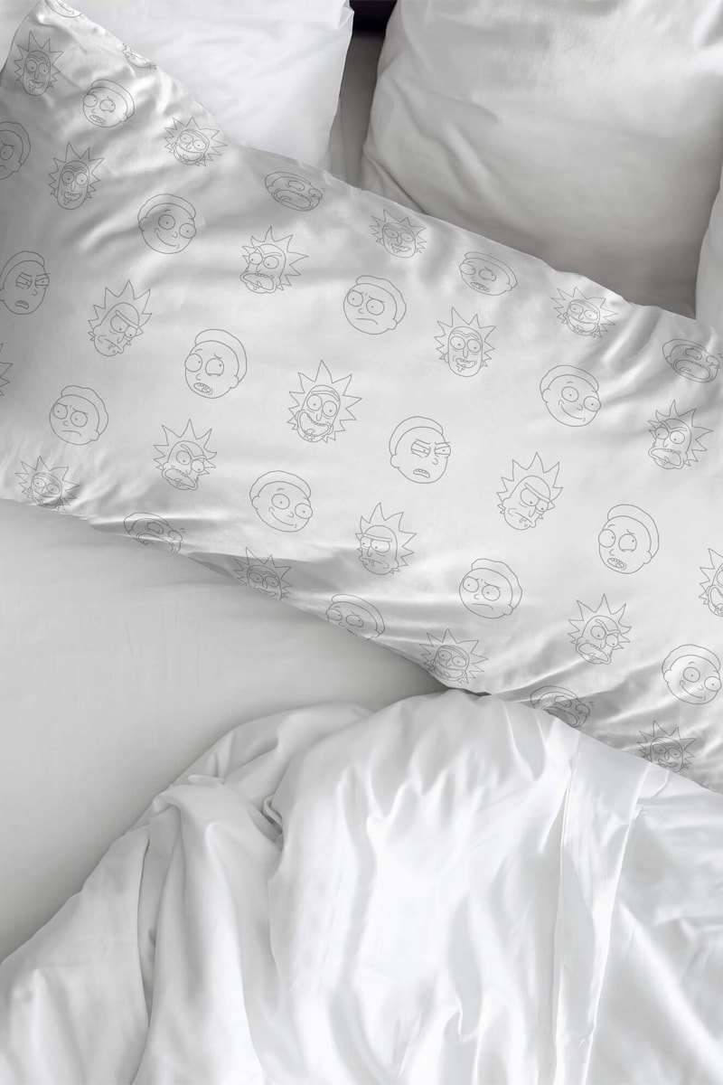 Katoenen Kussensloop 69 draad/cm² Rick en Morty - Wit