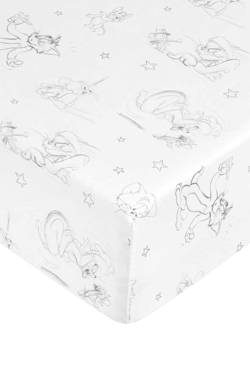 Katoenen Hoeslaken 69 Draad/cm² Tom en Jerry - Wit
