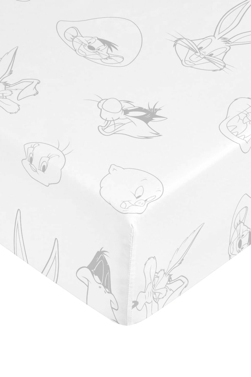 Katoenen Hoeslaken 69 Draad/cm² Looney Tunes - Wit