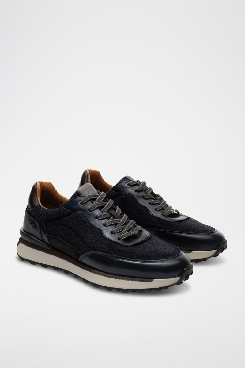 Leren en Tweed Sneakers - Marineblauw