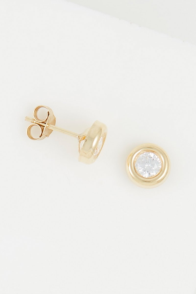 Oorbellen van geelgoud ingelegd met zirkoniumoxide.