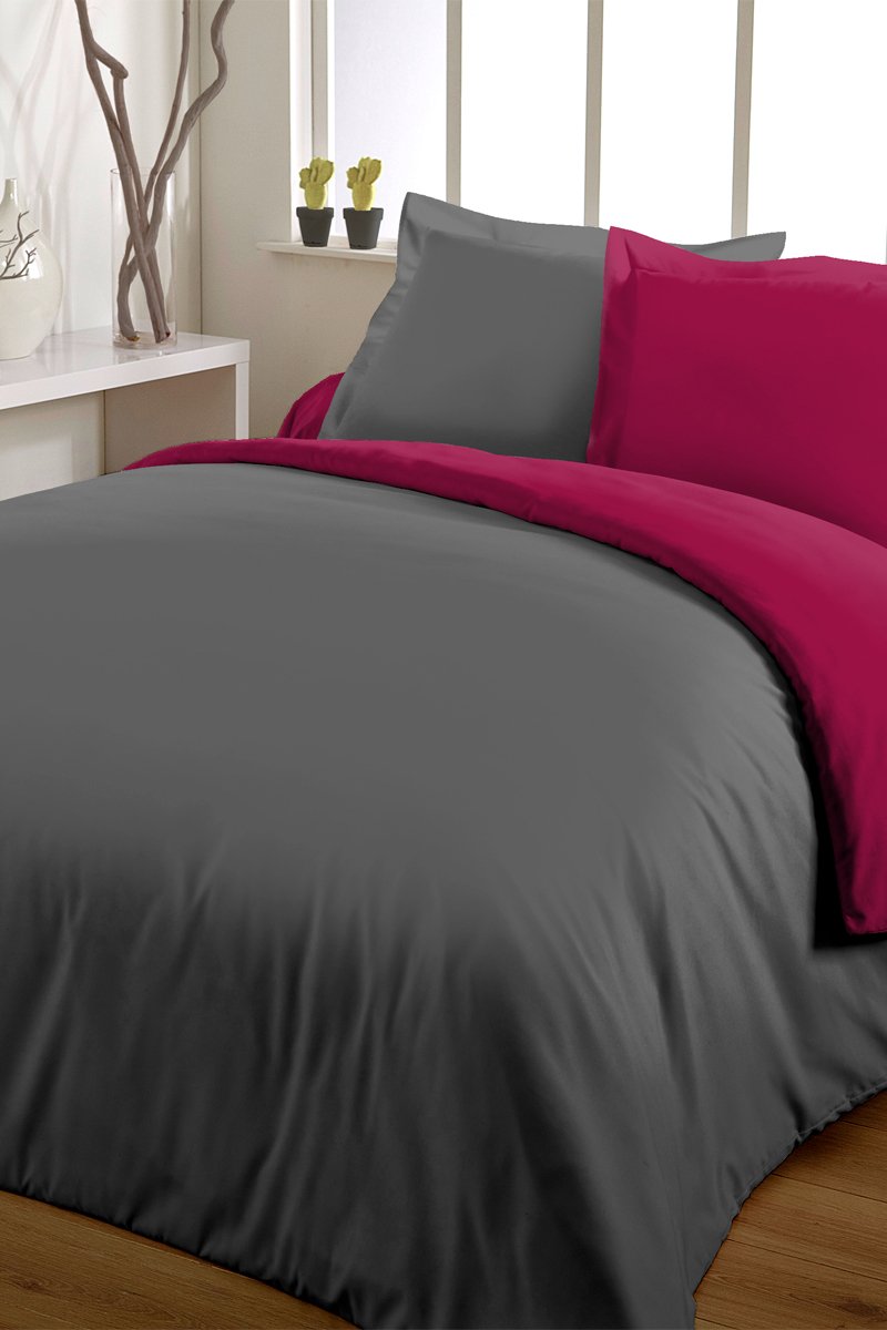 Katoenen Overtrekset 57 Draad/cm² - Donkergrijs en Fuchsia