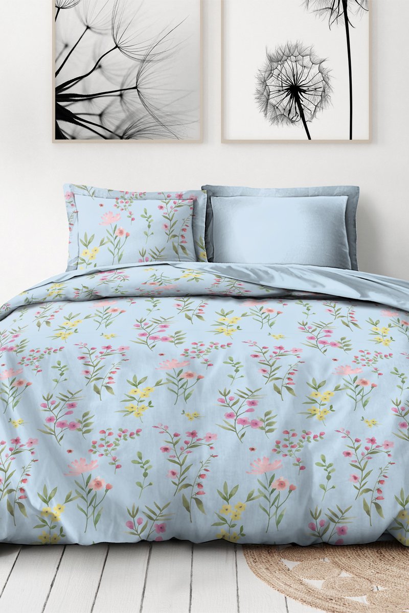 Perkalkatoenen Overtrekset 80 Draad/cm² La Flamboyante - Hemelsblauw en Groen
