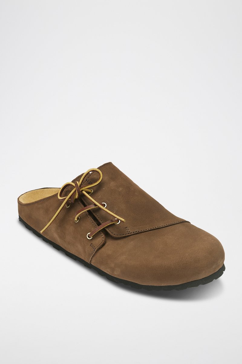 Clogs van leer en nubuck.