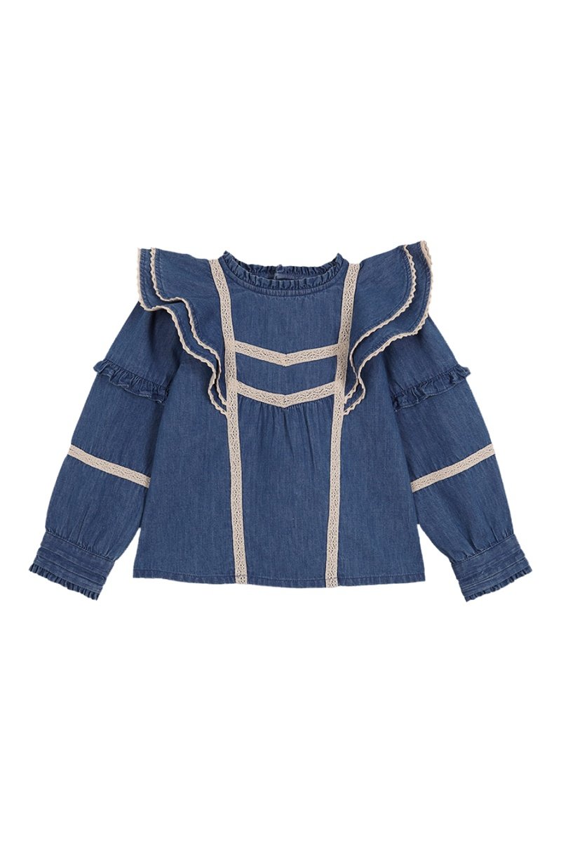 Ruches en biezen op de mouwen, aan de voorkant en aan de achterkant.