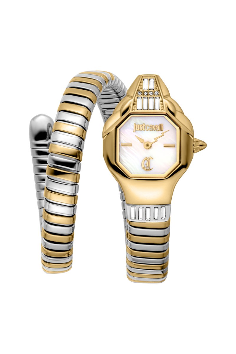 Stalen Quartz Horloge met Tsjechische Kristallen Brillante Snake - Goudkleurig en Zilverkleurig
