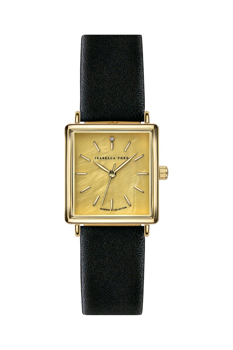 Leren Quartz Horloge met Parelmoer en Diamant Gisèle