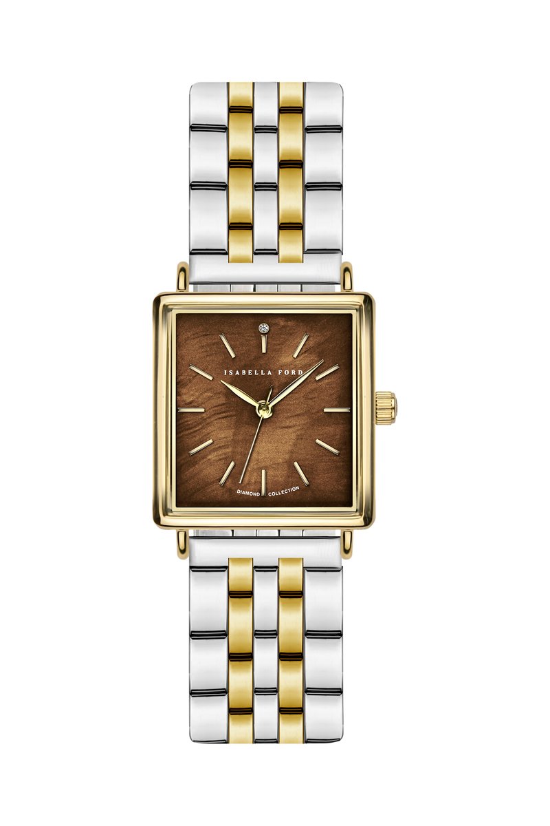 Stalen Quartz Horloge met diamant en parelmoer Marie