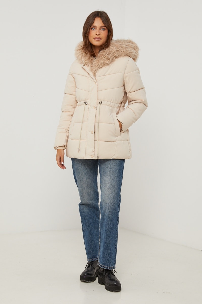 Gewatteerde Jas met Capuchon - Crèmekleurig