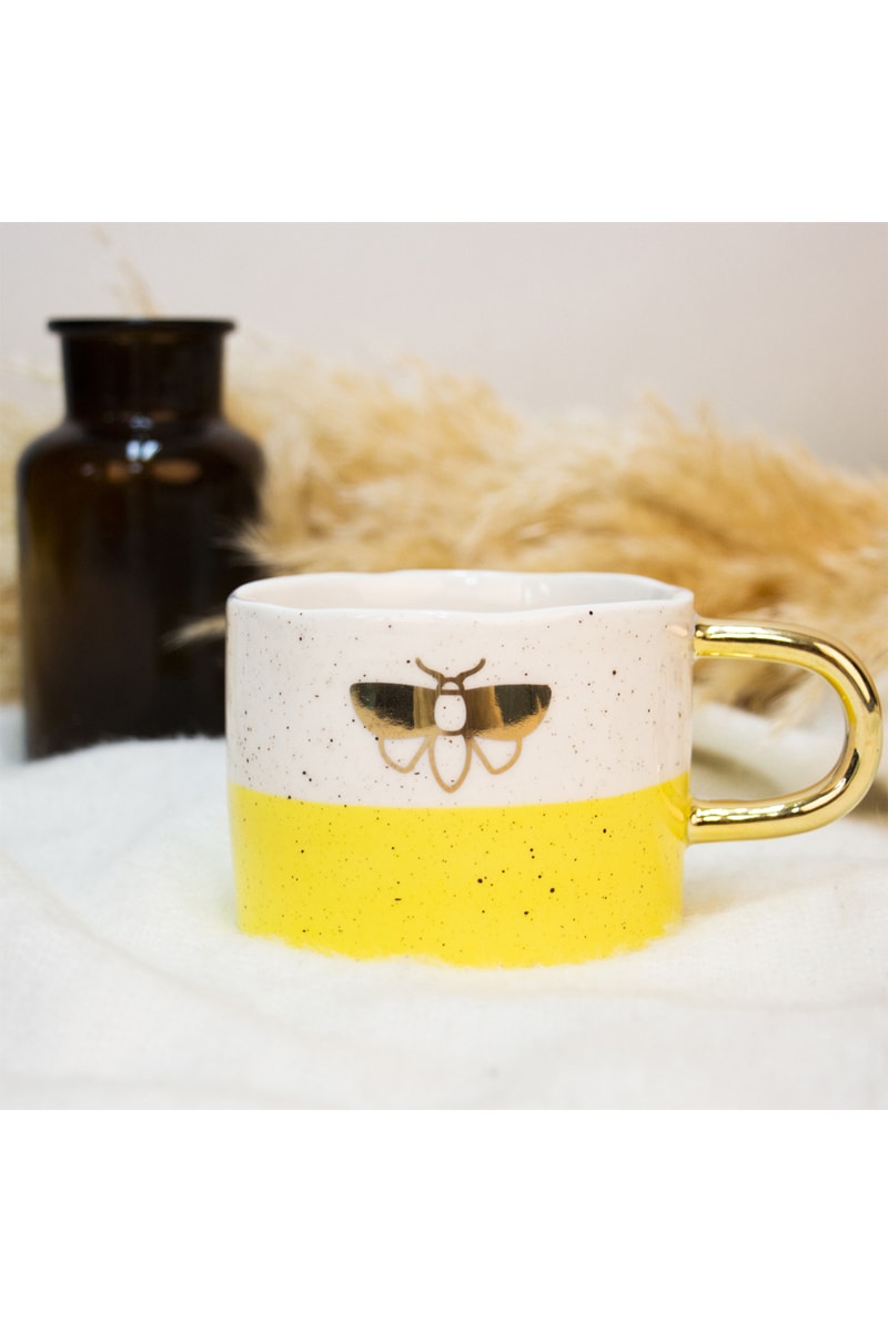 Kleur: geel, wit en goudkleurig